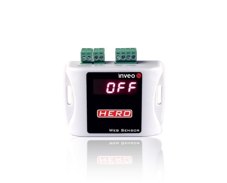Hero Sensor Web is a small module that allows to monitor data from up to 4 different sensors. It is adapted to read data from temperature, humidity, etc. sensors and 2 digital inputs.
